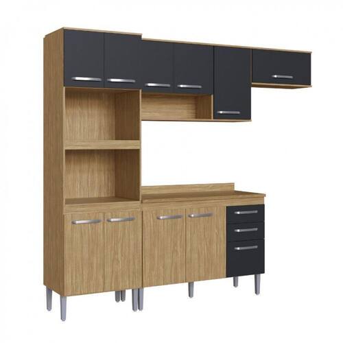 Conjunto modular Armário Aereo 70/120, Balcão 120, Torre Quente 65 com Tampo 120, confeccionado em MDP da linha Bélgica A3095.