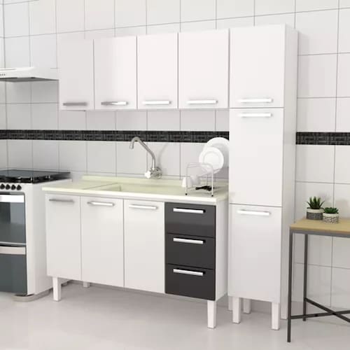 Gabinete em aço Vênus Flat 144 Cozimax - Modelo 3 gavetasA linha de armários em aço para cozinha Vênus Flat, da Cozimax, é resistente, fabricado em aço eletrogalvanizado com garantia de 3 meses, protegido por pintura em pó eletrostática, possui portas com design moderno e cantos retos, puxadores em ABS com acabamento metalizado.Disponível nas cores:Portas: Branca / Gavetas: BrancaPortas: Branca / Gavetas: PretaDimensões do produto:Largura: 144 cmAltura: 91 cmProfundidade (interno): 50 cmCaracterísticas técnicas:Produto: GabineteModelo: Vênus FlatMarca: CozimaxQuantidade de portas: 3Quantidade de gavetas: 3Possui prateleira interna: SimPintura: Pó eletrostáticaEstrutura: Aço eletrogalvanizadoPuxadores: ABS com acabamento metalizadoPés: Polipropileno virgem e com regulagem de alturaDobradiças: Sistema de molas (padrão)Corrediças: Roldana com abertura parcialPossui acabamento interno nas portas: NãoPossui fundo: SimPossui passagem para sifão: SimPossui divisor de talheres: SimArmário Aéreo em aço Vênus Flat 144 CozimaxA linha de armários em aço para cozinha Vênus Flat, da Cozimax, é resistente, fabricado em aço eletrogalvanizado com garantia de 3 meses, protegido por pintura em pó eletrostática, possui portas com design moderno e cantos retos, puxadores em ABS com acabamento metalizado.Disponível na cor:BrancoDimensões do produto:Largura: 144 cmAltura: 54,7 cmProfundidade (interno): 32,2 cmCaracterísticas técnicas:Produto: Armário AéreoModelo: Vênus FlatMarca: CozimaxQuantidade de portas: 4Possui prateleira interna: SimPossui divisória interna: SimPintura: Pó eletrostáticaEstrutura: Aço eletrogalvanizadoPuxadores: ABS com acabamento metalizadoDobradiças: Sistema de molas (padrão)Possui acabamento interno nas portas: NãoPossui fundo: SimPaneleiro em aço Vênus Flat CozimaxA linha de armários em aço para cozinha Vênus Flat, da Cozimax, é resistente, fabricado em aço eletrogalvanizado com garantia de 3 meses, protegido por pintura em pó eletrostática, possui portas com design moderno e cantos retos, puxadores em ABS com acabamento metalizado.Disponível na cor:BrancoDimensões do produto:Largura: 38,1 cmAltura: 208 cmProfundidade (interno): 32,2 cmCaracterísticas técnicas:Produto: PaneleiroModelo: Vênus FlatMarca: CozimaxQuantidade de portas: 3Possui prateleira interna: SimPintura: Pó eletrostáticaEstrutura: Aço eletrogalvanizadoPuxadores: ABS com acabamento metalizadoPés: Polipropileno virgem e com regulagem de alturaDobradiças: Sistema de molas (padrão)Possui acabamento interno nas portas: NãoPossui fundo: SimGarantia: 3 Meses