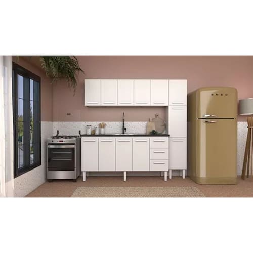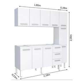 Gabinete em aço Vênus Flat 174 Cozimax - Modelo 3 gavetasA linha de armários em aço para cozinha Vênus Flat, da Cozimax, é resistente, fabricado em aço eletrogalvanizado com garantia de 3 meses, protegido por pintura em pó eletrostática, possui portas com design moderno e cantos retos, puxadores em ABS com acabamento metalizado.Disponível nas cores:Portas: Branca / Gavetas: BrancaPortas: Branca / Gavetas: PretaDimensões do produto:Largura: 174 cmAltura: 91 cmProfundidade (interno): 50 cmCaracterísticas técnicas:Produto: GabineteModelo: Vênus FlatMarca: CozimaxQuantidade de portas: 4Quantidade de gavetas: 3Possui prateleira interna: SimPintura: Pó eletrostáticaEstrutura: Aço eletrogalvanizadoPuxadores: ABS com acabamento metalizadoPés: Polipropileno virgem e com regulagem de alturaDobradiças: Sistema de molas (padrão)Corrediças: Roldana com abertura parcialPossui acabamento interno nas portas: NãoPossui fundo: SimPossui passagem para sifão: SimPossui divisor de talheres: SimArmário Aéreo em aço Vênus Flat 174 CozimaxA linha de armários em aço para cozinha Vênus Flat, da Cozimax, é resistente, fabricado em aço eletrogalvanizado com garantia de 3 meses, protegido por pintura em pó eletrostática, possui portas com design moderno e cantos retos, puxadores em ABS com acabamento metalizado.Disponível na cor:BrancoDimensões do produto:Largura: 174 cmAltura: 54,7 cmProfundidade (interno): 32,2 cmCaracterísticas técnicas:Produto: Armário AéreoModelo: Vênus FlatMarca: CozimaxQuantidade de portas: 5Possui prateleira interna: SimPossui divisória interna: SimPintura: Pó eletrostáticaEstrutura: Aço eletrogalvanizadoPuxadores: ABS com acabamento metalizadoDobradiças: Sistema de molas (padrão)Possui acabamento interno nas portas: NãoPossui fundo: SimPaneleiro em aço Vênus Flat CozimaxA linha de armários em aço para cozinha Vênus Flat, da Cozimax, é resistente, fabricado em aço eletrogalvanizado com garantia de 3 meses, protegido por pintura em pó eletrostática, possui portas com design moderno e cantos retos, puxadores em ABS com acabamento metalizado.Disponível na cor:BrancoDimensões do produto:Largura: 38,1 cmAltura: 208 cmProfundidade (interno): 32,2 cmCaracterísticas técnicas:Produto: PaneleiroModelo: Vênus FlatMarca: CozimaxQuantidade de portas: 3Possui prateleira interna: SimPintura: Pó eletrostáticaEstrutura: Aço eletrogalvanizadoPuxadores: ABS com acabamento metalizadoPés: Polipropileno virgem e com regulagem de alturaDobradiças: Sistema de molas (padrão)Possui acabamento interno nas portas: NãoPossui fundo: SimGarantia: 3 Meses