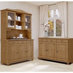 Conjunto Cozinha: Cristaleira 5 Portas 3 Gavetas Balcão 3 Portas 3 Gavetas Rubi Freijó Madeira Pinus - Finestra