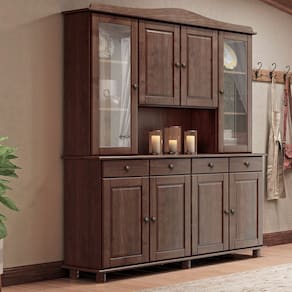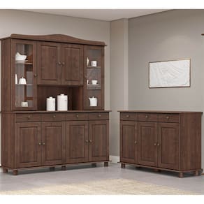 Conjunto Cozinha: Cristaleira 8 Portas 4 Gavetas e Balcão 3 Portas 3 Gavetas Rubi Café Madeira Pinus - Finestra