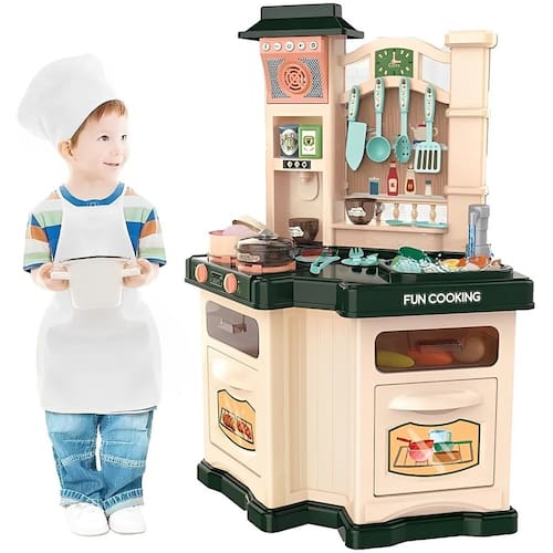 A Cozinha de Brinquedo é realmente Completa e acompanha diversas comidas e acessórios para que a criançada possa cozinhar e se divertir. Com o objetivo de trazer o faz de conta o mais perto da realidade! A cozinha possui um fogão com Spray para simular o vapor e faz sons para a brincadeira ficar ainda mais real e emocionante! Acompanha também uma pia com água para lavar as louças, 2 fornos que podem ser abertos, uma bancada de cozinha completa com acessórios essenciais do mundo gastronômico: Comidinhas, louça, panelas, além de ter diversas gavetas e compartimentos para guardar os mais de 30 acessórios.