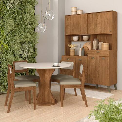 Conjunto Cozinha Tiana E Mesa Linares Frej/off/corino Bege - M.a