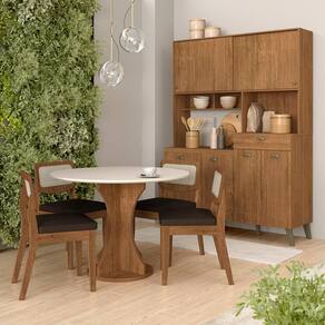 Conjunto Cozinha Tiana E Mesa Linares Frej/off/corino Marrom - M.a