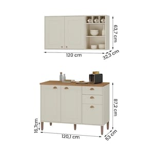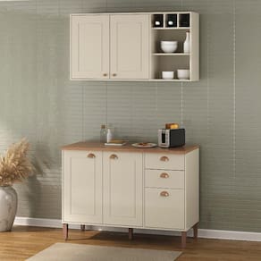 Modelo: Conjunto de Armario Aereo Com Nicho com Balcão Tunisia com Tampo 120 cm;