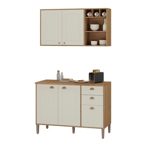 Modelo: Conjunto de Armario Aereo Com Nicho com Balcão Tunisia com Tampo 120 cm;