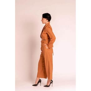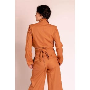 Conjunto Cropped Calça Jaque, a blusa possui mangas longas com ombreiras, detalhe de sobreposição que lembra um colete, possui bolsos duplos e falsos. Decote em V com lapela e cordas do mesmo tecido para amarração. Calça de cintura alta com fechamento frontal em zíper e bolsos laterais. O conjunto do cropped de manga longa e a calça de cintura alta é elegante e versátil, além de dar a impressão de que o corpo é mais alto e esbelto. Código do Produto: 2100002016585