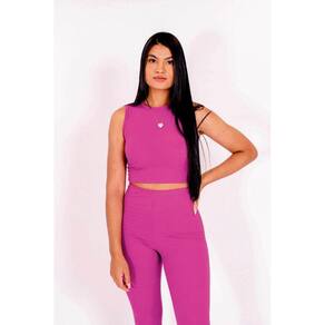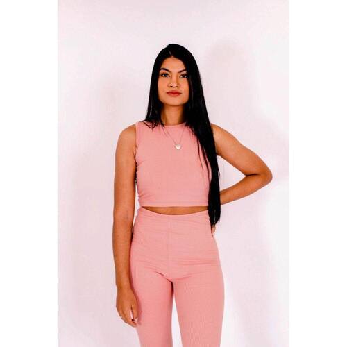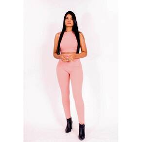 Conjunto Cropped Calça Malha Canelada - Rosa - M