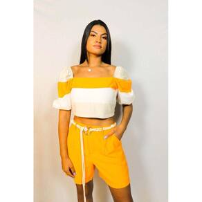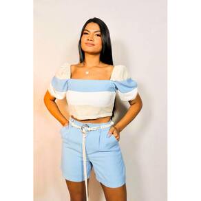 Conjunto Cropped Manga Bufante Shorts, possui forro, shorts com botões e zíper na frente, bolsos traseiros falsos e cropped com manga bufante, lastex nas costas. O conjunto Mazuki é a combinação perfeita do shorts com o cropped, um look para dias mais quentes e perfeito para várias ocasiões, pois além de leve e confortável, também é muito versátil. Código do produto:222927112005 Marca: Khalli