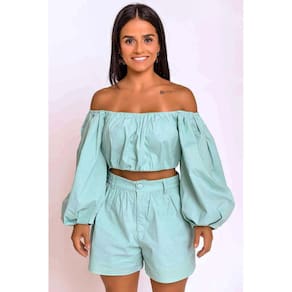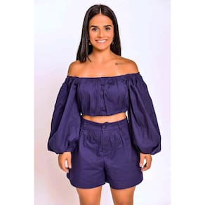 Conjunto Cropped Shorts, possui um shorts forrado, plissado na cintura, abertura em zíper e botão revestido com passadores e um cropped forrado com bojo estruturado, manga bufante e abertura de zíper nas costas,O conjunto cropped de manga longa é super versátil e ideal para looks mais confortáveis e casuais. Código do Produto: 1329 Marca: Khalli