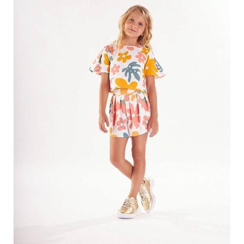 Conjunto para menina composto por blusa e short em meia malha stretch. A blusa possui modelagem tradicional, estampa flowers. O short conta com elástico no cós. Perfeito para aproveitar todos os momentos da estação, é o look ideal para as meninas que amam um visual cheio de conforto e estilo. Aposte!