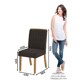 FICHA TÉCNICA: Escala de Brilho Cadeiras: Fosco Cadeiras Possui Rodízio: Não Peso Suportado por Cadeira: 120 Kg Estrutura Assento: MDP/MDF Altura Assento até o chão: 45,5 Cm Revestimento Assento: Tecido Suede Enchimento Assento: Espuma D18 Almofada Assento: Não possui Tipo Assento: Fixo Estrutura Encosto: MDP/MDF Revestimento Encosto: Tecido Suede Enchimento Encosto: Espuma D18 Tipo Encosto: Fixo Material dos pés: MDF Medidas Montado: 95,5 x 47 x 58,5 Cm Peso Montado: 8 Kg