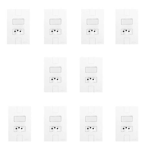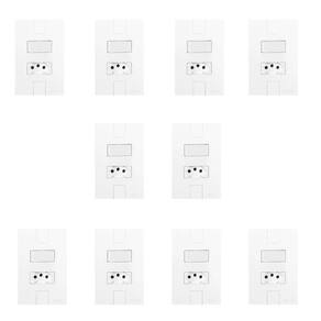 Conjunto de 10 Interruptores de 1 Tecla Simples e Tomada 2p+t 20A , Modular, com Placa 4x2 Branco