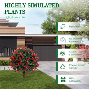 Os 2 pacotes de arbustos de buxo realistas com flores vermelhas têm 56 cm de altura e vêm com uma espiga no solo. Estes arbustos simulados são densamente folhados, com troncos sólidos e texturas realistas que os tornam réplicas perfeitas de plantas reais. Usamos material de PE 100% novo de alta qualidade que pode suportar todas as condições climáticas ao ar livre e é seguro para idosos, crianças e animais de estimação. Perfeito para adicionar um pouco de verde a qualquer espaço e dar a você um gostinho da natureza. Simples de instalar, fácil de manter e cuidar, estas plantas falsas são fáceis de empurrar para o chão. Pode ser utilizado em ambientes internos e externos, decoração de escritório, mesa, jardim, varanda, varanda. Claro, para combinar melhor com o estilo da sua casa, você pode colocá-las em qualquer vaso que combine. Também pode ser utilizado como um presente de inauguração para sua família e amigos. - ?Aparência realista e realista? 2 pacotes de árvores de topiaria de buxo realistas com flores vermelhas têm 56 cm de altura e vêm com um espigão. (44 cm de folhas e caule, 12 cm de espigas). Estes arbustos falsos apresentam folhagem densa e variações de cor detalhadas nas folhas, o tronco sólido com textura realista o torna uma réplica perfeita de plantas reais, perfeito para adicionar um toque de vegetação a qualquer espaço - ?Material de alta qualidade? Usamos material de PE 100% novo de alta qualidade que suporta todos os tipos de condições climáticas ao ar livre, como: chuva e luz solar. Elas também são resistentes a UV, resistentes ao desbotamento, não têm problemas de deterioração e sem odor pungente, seguras para todos os idosos, crianças e animais de estimação - ?Design versátil? Estas plantas artificiais quase naturais podem decorar qualquer ambiente para permitir que você sinta a presença da natureza. Os arbustos podem ser utilizados em ambientes internos e externos, decoração de escritório, mesa, jardim, varanda, varanda. Claro, para combinar melhor com o estilo da sua casa, você pode colocá-las em qualquer vaso combinando. Também pode ser utilizado como presente para amigos e parentes para inauguração de casa - Fácil manutenção e cuidado: as plantas artificiais de topiaria ao ar livre podem manter uma aparência realista e viva em todas as estações. Diga adeus à rega, poda e outros cuidados tediosos com plantas, e não se preocupe com folhas caindo, se alguma flor cair durante o desencaixotamento, refixe-as facilmente apenas ao galho - Fácil instalação: esta planta sintética é fácil de empurrar no chão. Desembale esses arbustos falsos e simplesmente dê a eles um pouco de forma e penugem. Sem necessidade de ferramentas, basta fixar o espigão no porta-malas e colocá-lo onde você preferir