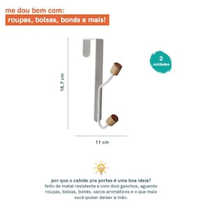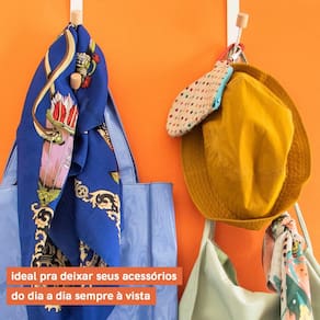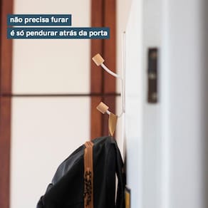 Esse é o cabide com gancho para porta, da coleção Ferreiro da OIKOS. Sem furar, é só pendurar atrás da porta do quarto, banheiro, entrada, lavanderia, escritório ou onde você quiser. Feito de metal resistente e com dois ganchos, ele aguenta roupas, bolsas, bonés, sacos aromáticos e o que mais você quiser deixar à mão. Dá até para já deixar separada a roupa e os acessórios do dia seguinte, bem prático.