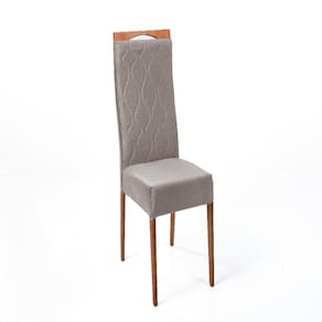 🌟 Benefícios e Funcionalidades Elegância e Sofisticação: O design é complementado por um tecido de veludo suave ao toque e um acabamento em pintura UV, conferindo resistência e um visual elegante. Conforto: Assento e encosto acolchoados com espuma D18 proporcionam conforto excepcional mesmo após longos períodos de uso. Durabilidade: Estrutura robusta em madeira garante resistência e longa vida útil. Suporte Adicional: O espaldar integrado oferece suporte adicional às costas.