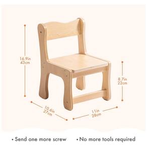 Montagem Fácil: Nossas cadeiras infantis são fáceis de montar, exigindo apenas uma pessoa e levando cerca de 10 minutos para serem concluídas. Construção Sólida: Ao contrário das alternativas de plástico frágeis, nossa cadeira de madeira infantil é construída para durar com montagem resistente por parafusos, garantindo estabilidade e durabilidade. Segurança em Primeiro Lugar: Feita com materiais de madeira de alta qualidade, nossa cadeira infantil de madeira possui uma robusta capacidade de carga de até 113 kg, proporcionando tranquilidade aos pais. Design Versátil: Tamanho perfeito para a maioria das mesas infantis, a cadeira infantil de madeira é uma adição versátil para o quarto, brinquedoteca ou creche. Qualidade Duradoura: Cada cadeira de madeira para crianças é meticulosamente finalizada com um verniz transparente, realçando a beleza natural da madeira e oferecendo resistência excepcional contra desgaste diário, garantindo anos de diversão para os pequenos.