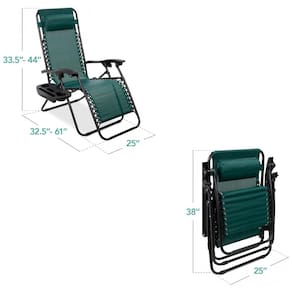 Desfrute de momentos relaxantes com o Conjunto de 2 Cadeiras Reclináveis de Gravidade Zero em Malha de Aço da marca Best Choice Products. Com um sistema de reclinio travável, ajusta-se suavemente à posição ergonômica de gravidade zero. Leve e portátil, perfeito para viagens ao parque, praia ou eventos esportivos. A bandeja removível possui dois porta-copos, suporte para telefone e tablet, mantendo tudo ao alcance. Construção confiável com capacidade de até 113kg e tecido textilene resistente. Inclui encostos de cabeça removíveis e ajustáveis para conforto personalizado. Dimensões abertas: 82,5-155,5cm C x 63,5cm L x 85-112cm A. Dimensões dobradas: 96,5cm C x 63,5cm L x 15cm A. Peso suportado: 113kg.