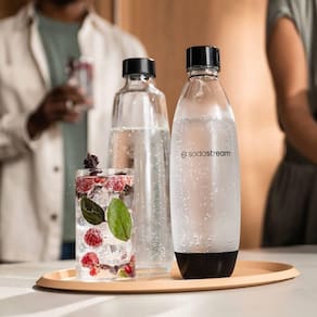 Conjunto De 2 Garrafas Plásticas 1 Litro Sodastream Preta Nossas garrafas de gaseificação de 1 litro e 500ml trazem a efervescência e mantêm sua bebida fresca e borbulhante por até 2 semanas! Tamanho perfeito para compartilhar com a sua família ou mantê-lo fresca para o dia todo.Nosso plástico é livre de BPA e Phitalato (substâncias químicas apontadas por estudos internacionais com alto grau de efeitos nocivos a saúde).Fabricada pela Israelense Sodastream, está presente em 42 países com mais de 50 mil pontos de venda ao redor do mundo.-Especificações do produto:-Agora as garrafas SODASTREAM são compatíveis com lavagem em maquina lava louça-Nossas garrafas são produzidas com plástico PP o qual suporta altas temperaturas, sendo o ideal para uso diário e facilitando a limpeza-Todas as garrafas SODASTREAM são BPA FREE, o que significa que nenhuma partícula de plástico irá contaminar sua bebida-As garrafas tem duração de mais de 3 anos porem você pode utilizá-la para bebidas não gasosas indefinidamente. -Uma garrafa SODASTREAM pode ajudar economizar até milhares de garrafas plásticas descartáveis-Compativeis com todas as maquinas SODASTREAM (JET, FIZZI, GAIA, TERRA E ART)Ficha técnica:- Código: 4088930220- Marca: Sodastream- Conteúdo da Embalagem: 2 Garrafas - Material: Plástico - PP- Capacidade: 1 litro (garrafa), 840ml gaseificado- Cor: Cristal Tampa preta- Peso do produto: 0,282kg- Peso com embalagem: 0.300kg- Dimensões: 28,2cm x 8,6cm x 17,5cm (AxLxP)- Garantia: 1 ano Altura - 28,2 Largura - 8,6 Profundidade - 17,5 Peso - 0,282
