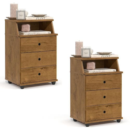Material da mesa de cabeceira: MDP de 12 com pés em plástico;