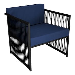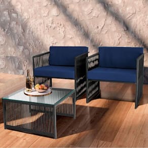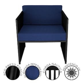 Conjunto De 2 Poltronas E Mesa De Centro Quadrada Com Tampo Preto/azul