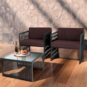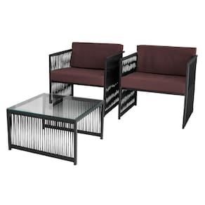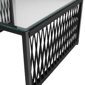 Composto por duas poltronas e uma mesa de centro, fabricadas em Aco Carbono, oferecendo resistencia ao sol, dando mais Durabilidade. Com acabamento em Corda Nautica, que confere uma estetica refinada, adaptando a diversos estilos de decoracao.