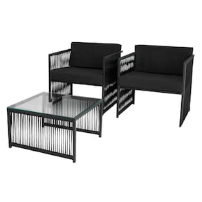 Conjunto De 2 Poltronas E Mesa De Centro Quadrada Com Tampo Preto/preto