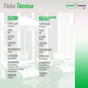 - Conteudo da Embalagem: (01 Mesa de Centro, 02 Poltronas).