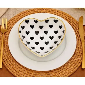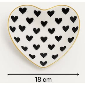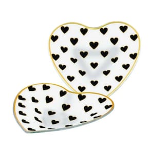 Conjunto de 2 Tigelas de Vidro em Formato de Coração - Branco e Preto - 18cm