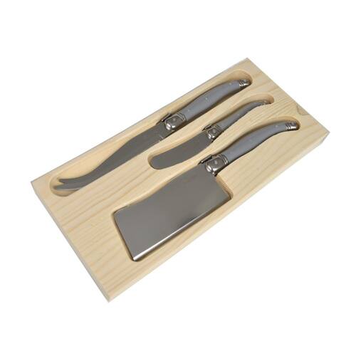 Conjunto De 3 Facas Luxo Para Queijo Com Bandeja De Madeira - Cinza Conjunto de 3 facas luxo para queijo Laguiole La Tour com bandeja de madeira - Cinza Ean: 7898970877004