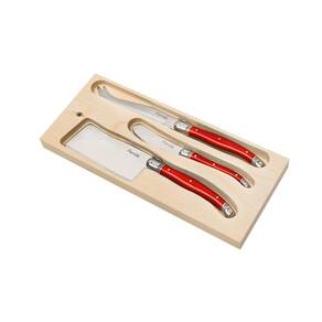 Conjunto De 3 Facas Luxo Para Queijo Com Bandeja De Madeira - Vermelho Conjunto de 3 facas luxo para queijo Laguiole La Tour com bandeja de madeira - Vermelho