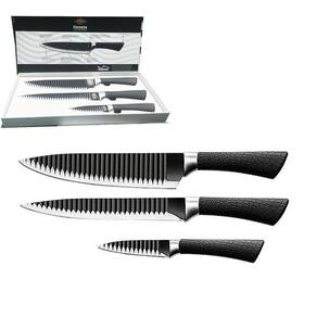 O conjunto de 3 facas tubarão Corneta é a inovação e sofisticação em facas Chef, com seu design ondulado acompanhado de um corte preciso e uma empunhadura confortável que dá um toque especial a sua cozinha e a arte de cozinhar. É sucesso garantido no preparo dos seus alimentos. Sua alta qualidade garante um melhor corte já que sua lâmina em aço inox é muito resistente e possui um design especifico, com seu cabo anatômico em polipropileno virgem. Indicada para cortar e fatiar carnes, legumes e verduras.