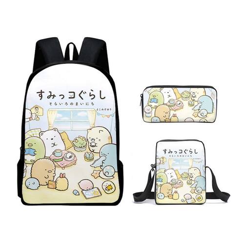 Conjunto de 3 peças em bolsa escolar infantil Sumikko Satchel com impressão 3D