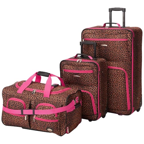 Bagagem vertical expansível Rockland Vara Fashion Softside, PINKLEOPARD, conjunto de 3 peças (20/22/28)
