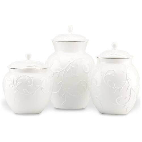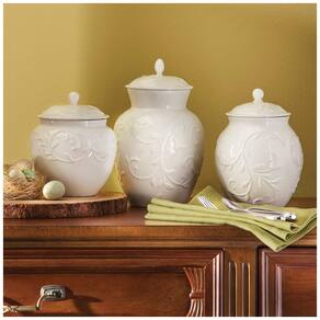 Descrição: Adicione um toque de elegância à sua cozinha com este conjunto de potes esculpidos da Lenox. Projetados com um acabamento em porcelana branca sofisticada, esses potes são perfeitos para armazenar seus ingredientes favoritos ou para servir em ocasiões especiais.