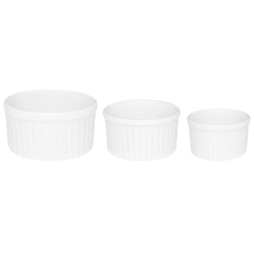 Muito utilizado na culinária ao redor do mundo, o ramequin é uma pequena tigela de porcelana refratária em formato circular e com a parte de fora estriada. É muito utilizado para servir suflês e o famoso crme brlée, mas pode ser empregado em diversas outras receitas, conforme a sua imaginação pedir. Conteúdo da embalagem: 1 ramequin grande com 10cm de diâmetro, 5cm de altura e 180ml de capacidade / 1 ramequin médio com 8cm de diâmetro, 4cm de altura e 100ml de capacidade / 1 ramequin pequeno com 6cm de diâmetro, 3cm de altura e 50ml de capacidade- garantia: 60 meses para gretagem- uso: forno convecional, micro-ondas e lava-louças- tipo da embalagem: papelão pardo- tipo: tigela ramequin- material: porcelana refratária- cor: branco- formato: redondo- nome do desenho: branco- utilizações seguras: forno convecional, micro-ondas e lava-louças- cor principal: branco
