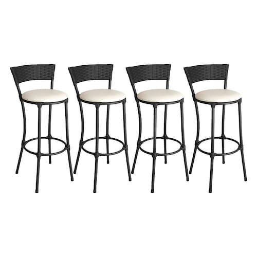 O Conjunto de 4 Banquetas Alta Forts é a escolha perfeita para quem busca uma combinação de design elegante, resistência e versatilidade para complementar qualquer ambiente da casa. Fabricada em aço carbono de alta qualidade e pintada com epóxi, oferece robustez e durabilidade. O acabamento em fibra sintética com proteção UV -vime/junco- proporciona não somente beleza, mas também proteção contra os raios solares. O assento em espuma D28 proporciona o máximo conforto para suas refeições e momentos de lazer. Além disso, o assento é revestido com courino ou tecido impermeável, permitindo que você escolha a opção que melhor se adapta ao seu estilo. Com seu design contemporâneo e acabamento sofisticado, ela se integra perfeitamente a diversos estilos de decoração, seja em ambientes residenciais ou comerciais.
