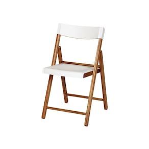 Madeira Itaúba Acabamento natural Lixado Assento e encosto em Polipropileno na cor Branco Dobrável Entregue Montada Suporta até 110 kilos