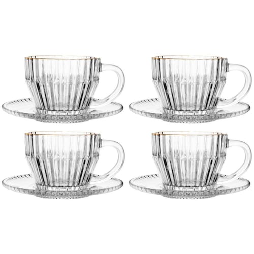 Desfrute de momentos de café com elegância e sofisticação com o Conjunto de 4 Xícaras de Café de Cristal Imperatriz com Fio de Ouro da Wolff.