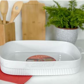 Garantia: 90 dias / Peso de cada: 2,580kg / Cor predominante: Branco / Ref: 7798139994224; Dimensões externas de cada: 42cm (C) x 26,5cm (L) x 7cm (A); Dimensões internas de cada: 36cm (C) x 24cm (L) x 6cm (A); OBS: pode ser utilizado em microondas, forno, congelador e lava louças; * Lembramos que o produto não é resistente a chama direta apenas ao forno. Capacidade de cada: 5 litros; Formato: retangular. Material: porcelana. Conteúdo: 5 travessas branca.