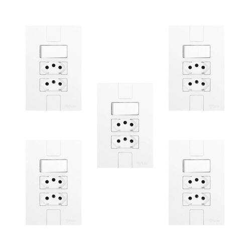 Com design moderno e linhas retas esse conjunto é utilizado para o acionamento manual da iluminação (liga/desliga) e permite a conexão dos aparelhos e dispositivos à rede elétrica em diversos ambientes residenciais, comerciais ou industriais. Nossas placas e teclas são produzidos em ABS e com tratamento anti-UV garantindo a cor e o brilho por muito mais tempo Altura do Conjunto: 18 cm Ambiente: null Ambiente Principal: Sala de Estar Cor: Branco Cor Predominante: Branco Garantia do Fornecedor: 5 anos Informação Complementar: 5x Interruptor de 1 Tecla Simples e 2 Tomadas 2p+t 20A , Modular, com Placa 4x2 Branco Largura: 12 cm Altura: 18 cm Peso: 0,069 g