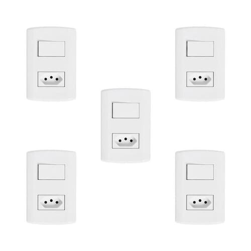 Com design sofisticado esse conjunto é utilizado para o acionamento manual da iluminação (liga/desliga) e permite a conexão dos aparelhos e dispositivos à rede elétrica em diversos ambientes residenciais, comerciais ou industriais. Nossas placas e teclas são produzidos em ABS e com tratamento anti-UV garantindo a cor e o brilho por muito mais tempo Altura do Conjunto: 12.5 cm Ambiente: null Ambiente Principal: Sala de Estar Cor: Branco Cor Predominante: Branco Garantia do Fornecedor: 5 anos Informação Complementar: 5x Interruptor de 1 Tecla Simples e Tomada 2p+t 20A , Modular, com Placa 4x2 e Suporte Branco Largura: 8.5 Altura: 12.5 Peso: 0.068