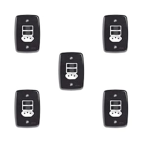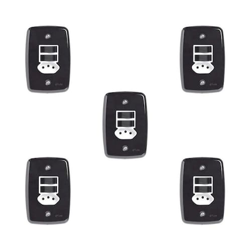 Com design sofisticado esse conjunto é utilizado para o acionamento manual da iluminação (liga/desliga) e permite a conexão dos aparelhos e dispositivos à rede elétrica em diversos ambientes residenciais, comerciais ou industriais. Nossas placas e teclas são produzidos em ABS e com tratamento anti-UV garantindo a cor e o brilho por muito mais tempo Altura do Conjunto: 18 cm Ambiente: null Ambiente Principal: Sala de Estar Cor: Preto Cor Predominante: Preto Garantia do Fornecedor: 5 anos Informação Complementar: 5x Interruptor de 2 Teclas Simples e Tomada 2p+t 20A , com Placa 4x2 Preto Largura: 12 cm Altura: 18 cm Peso: 0,068 g