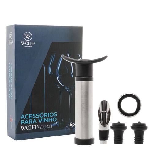 Conjunto de 5 Peças para Vinho de Aço Inox com Caixa - Wolff