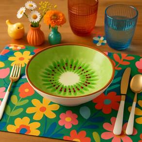 Sua estampa de kiwi vibrante traz sofisticação, encanto e alegria á mesa, junto a um toque comtemporâneo e moderno.