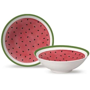 Cada peça é estampada com o charme irresistível da melancia - combinação perfeita de tons vibrantes e design alegre que transforma qualquer refeição em um momento especial.