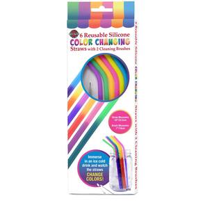 Collections Etc Canudos reutilizáveis que mudam de cor ecológicos, conjunto de 6