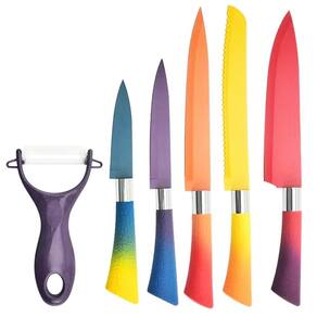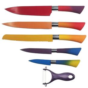 Ótima combinação para a sua cozinha. Facas para cortes de carnes. Lâminas afiadas e resistente de aço inoxidável Cabo antiderrapante. Um cabo confortável, para garantir o uso seguro da faca ao utilizar, coloridos em degrade, não tóxico.