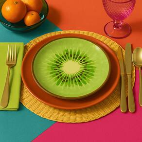 Sua estampa de kiwi vibrante traz sofisticação, encanto e alegria á mesa, junto a um toque comtemporâneo e moderno.
