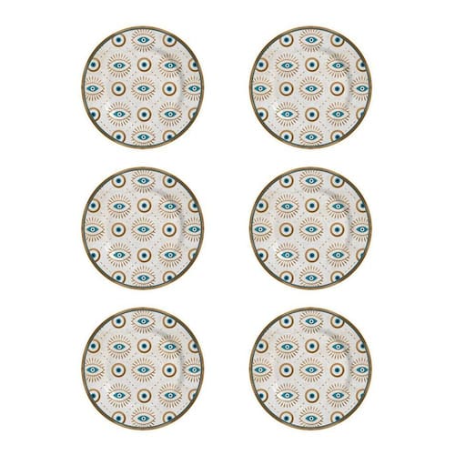 Conjunto De 6 Pratos Raso Olho Grego Alleanza Branco E Azul